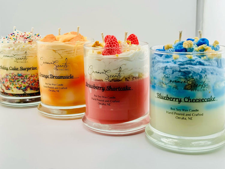 Introducing our Dessert-inspired Candle Collection, where each candle is a delicious journey through beloved flavors. Handcrafted from premium soy wax, perfect for gifting or creating a cozy atmosphere at home. They promise a clean, long-lasting burn that fills any space with the irresistible aroma of sweet indulgence. Treat yourself or someone special to the essence of dessert with every flicker of the flame.
