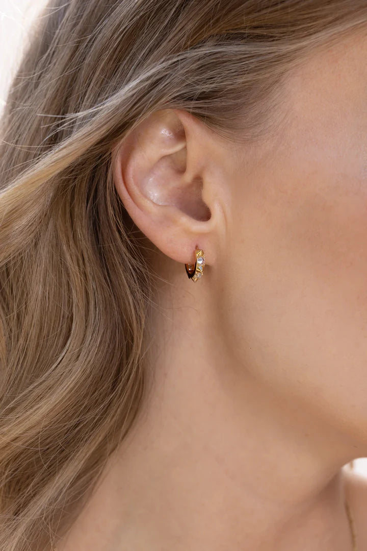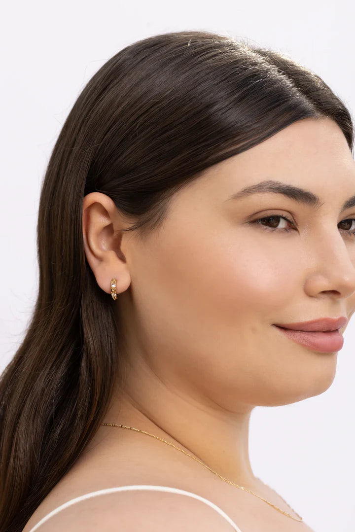 In need of an ear party update? The Kaia Huggies are an edgy take on the classic style, featuring CZs and pointed studs.