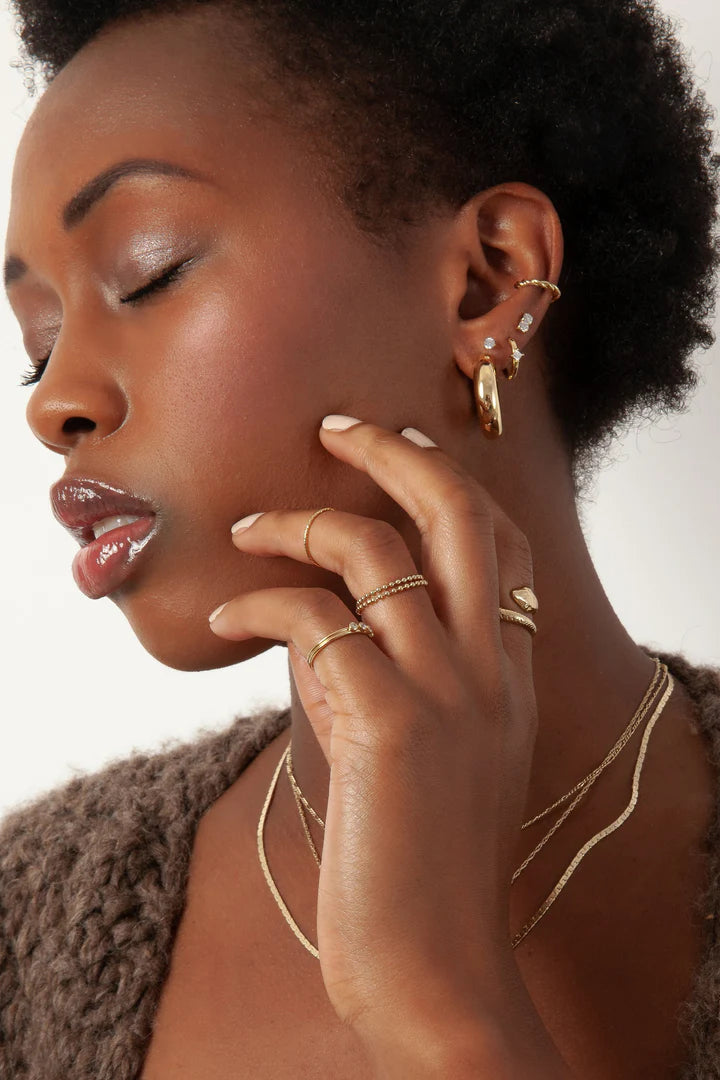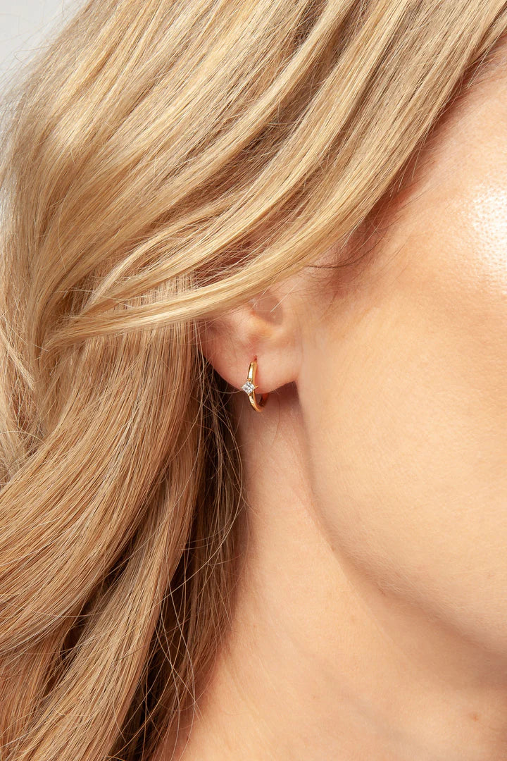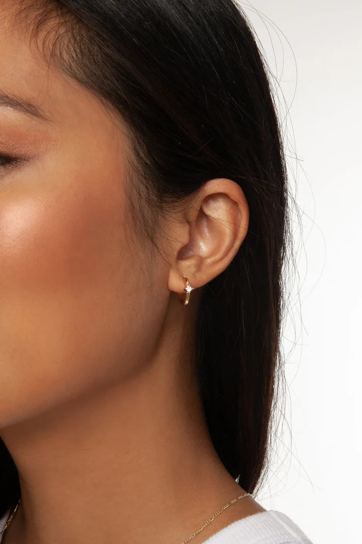 The Kierza Huggie is our definition of understated elegance. Classic yet contemporary, it hugs your earlobe at the most comfortable angle so you’ll never want to take it off. The sparkling stone at the center makes for a special finishing touch.