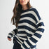 Laid-back, oversized, and undeniably chic. The SoftWave Stripe Set features a longline, wide-stripe sweater knit from a soft cotton blend for that breathable, cozy feel. Designed with extra-long drop shoulder sleeves and a slouchy fit, it brings effortless ease to your everyday look. The matching solid wide-leg pants have a smooth elastic waistband and a draped silhouette that flows with you-perfect for lounging or stepping out in elevated comfort